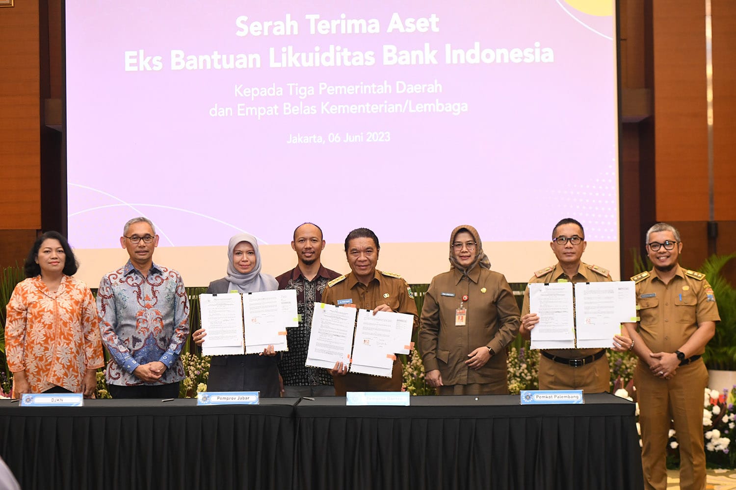 (Infoparlemen.co.id) – Pemerintah Provinsi (Pemprov) Banten mendapatkan hibah tanah aset eks Bantuan Likuiditas Bank Indonesia (BLBI) dari Pemerintah Pusat. Penyerahan aset hibah tersebut dilaksanakan di Gedung Kementerian Keuangan RI, Jakarta, disaksikan Menteri Keuangan Sri Mulyani Indrawati, dan Menteri Koordinator Politik Hukum dan Keamanan (Menkopolhukam) Mahfud MD. Penyerahan aset dilaksanakan dengan Penandatanganan Berita Acara Serah Terima (BAST) Aset Eks BLBI dari Kementerian Keuangan ke Pemerintah Provinsi Banten, yang diterima langsung oleh Pj. Gubernur Banten Al Muktabar, didampingi Kepala BPKAD Provinsi Banten Rina Dewiyanti. Penyerahan aset tersebut berdasarkan Keputusan Direktur Jenderal Kekayaan Negara Nomor 546/KN/2022 tanggal 15 November 2022, Provinsi Banten mendapatkan hibah berupa 4 (empat) bidang tanah yang terletak di Jalan H. Saidin, Kelurahan Bambu Apus, Kecamatan Pamulang, Kota Tangerang Selatan, dengan luas total 10.130 m2 dengan nilai Rp. 19.588.018.000,.