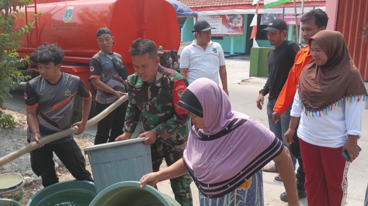 Serang, (infoparlemen.co.id) – Bintara Pembina Desa (Babinsa) Koramil 0602-10 /Pontang Kodim 0602/Serang Sersan Kepala (Serka) Ari Winarko, bersama Badan Penanggulangan Bencana Daerah (BPBD) Provinsi Banten menyalurkan bantuan air bersih kepada masyarakat,