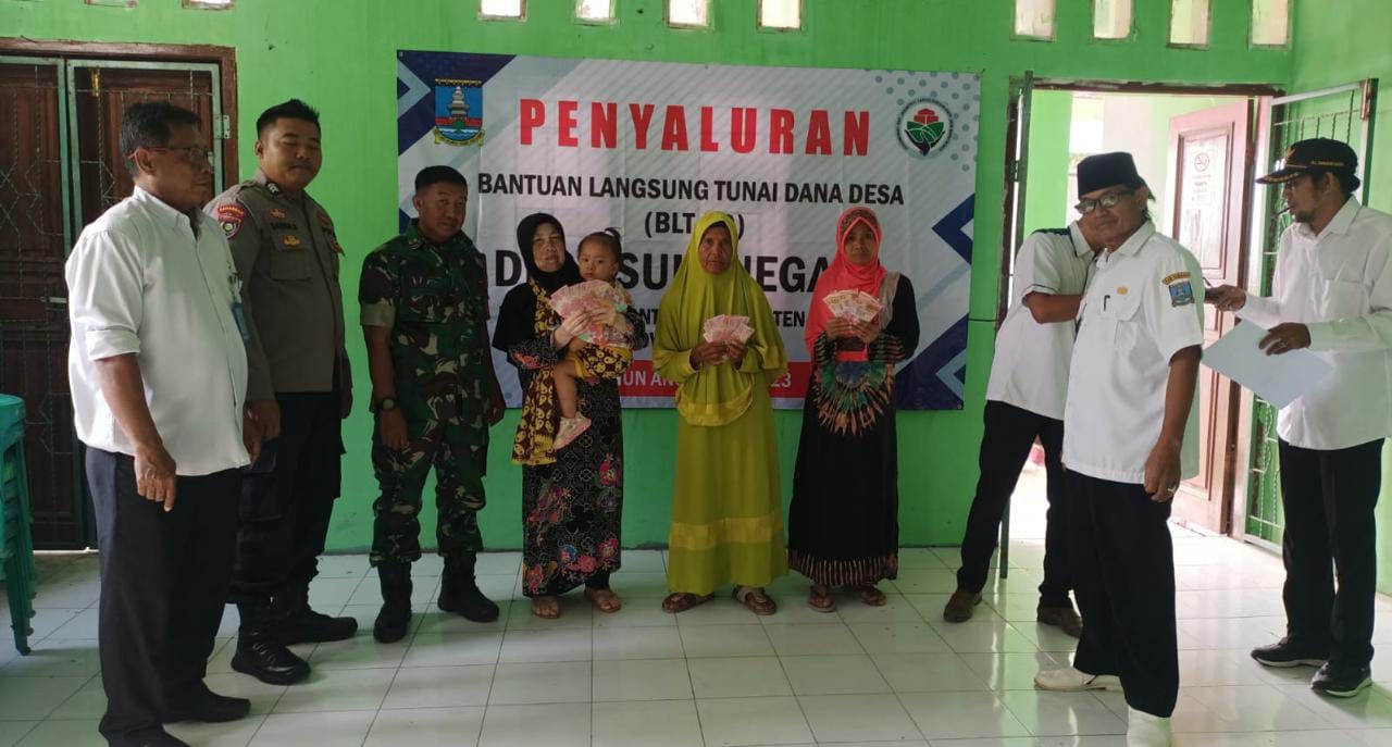 Serang, (infoparlemen.co.id) – Untuk memastikan tepat sasaran, Babinsa Koramil 0602-10/Pontang Kodim 0602/Serang Sersan Kepala (Serka) Edi Supriadi bersama Bhabinkamtibmas Polsek Pontang Bripka Sanghaji, melaksanakan kegiatan pemantauan dan pendampingan pembagian Bantuan Langsung Tunai (BLT) Dana Desa Tahap 2 (Dua) Tahun 2023, bertempat di Kantor Desa Sukanegara Kecamatan Pontang Kabupaten Serang Provinsi Banten, Rabu (09/08/2023).