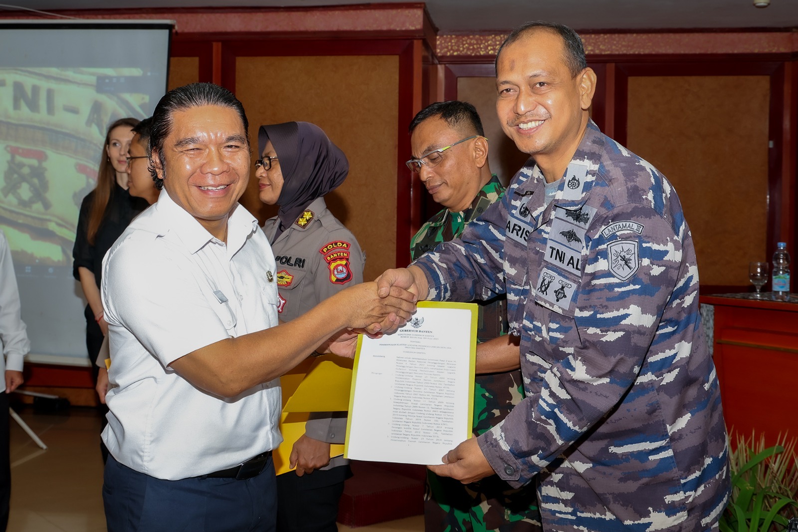 (Infoparlemen.co.id) – Penjabat (Pj) Gubernur Banten Al Muktabar mengukuhkan keanggotaan Klaster Logistik Penanggulangan Bencana Provinsi Banten. Anggota klaster ini terdiri dari berbagai pihak, lintas lembaga, badan, dunia usaha, komunitas serta unsur masyarakat lainnya. Pengukuhan berdasarkan Surat Keputusan (SK) Gubernur Banten Nomor 360.05/Kep.189-Huk/2023 tentang Pembentukan Klaster Logistik Penanggulangan Bencana Provinsi Banten.