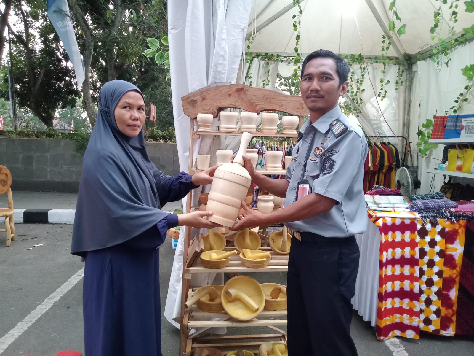 LEBAK, (infoparlemen.co.id) -Lapas kelas III Rangkasbitung Kanwil Kemenkumham Banten ikut memeriahkan kegiatan Pameran koperasi dan Harnas UMKM 2023 dengan menampilkan produk unggulan kerajinan hasil karya Warga Binaan Pemasyarakatan (WBP) yang bertempat di Alun-alun Rangkasbitung, Selasa (15/08)