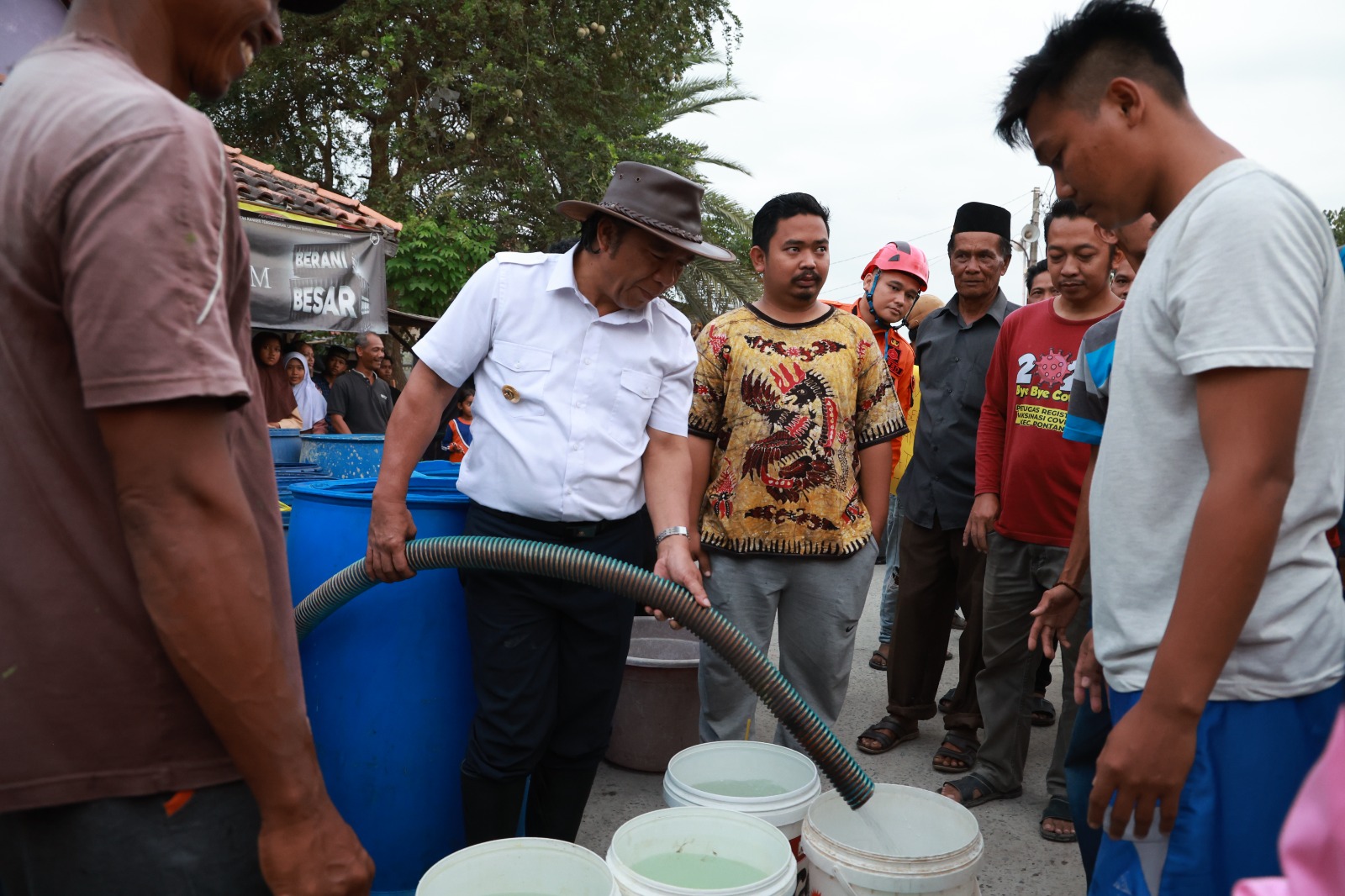 Kepala Pelaksana (Kalak) BPBD Provinsi Banten Nana Suryana menambahkan, seperti yang telah diarahkan oleh Bapak Pj Gubernur Banten Al Muktabar, pihaknya sudah menerjunkan beberapa unit kendaraan dan personilnya untuk memberikan bantuan air bersih kepada masyarakat.