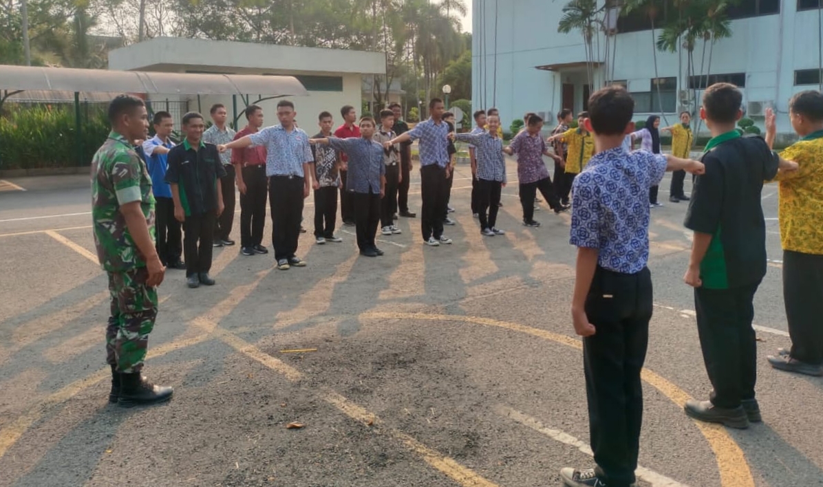 Pelatihan PBB aktif diberikan oleh Babinsa Koramil 0602-11/Tirtayasa kepada siswa siswi SMK Pelita Bangsa.