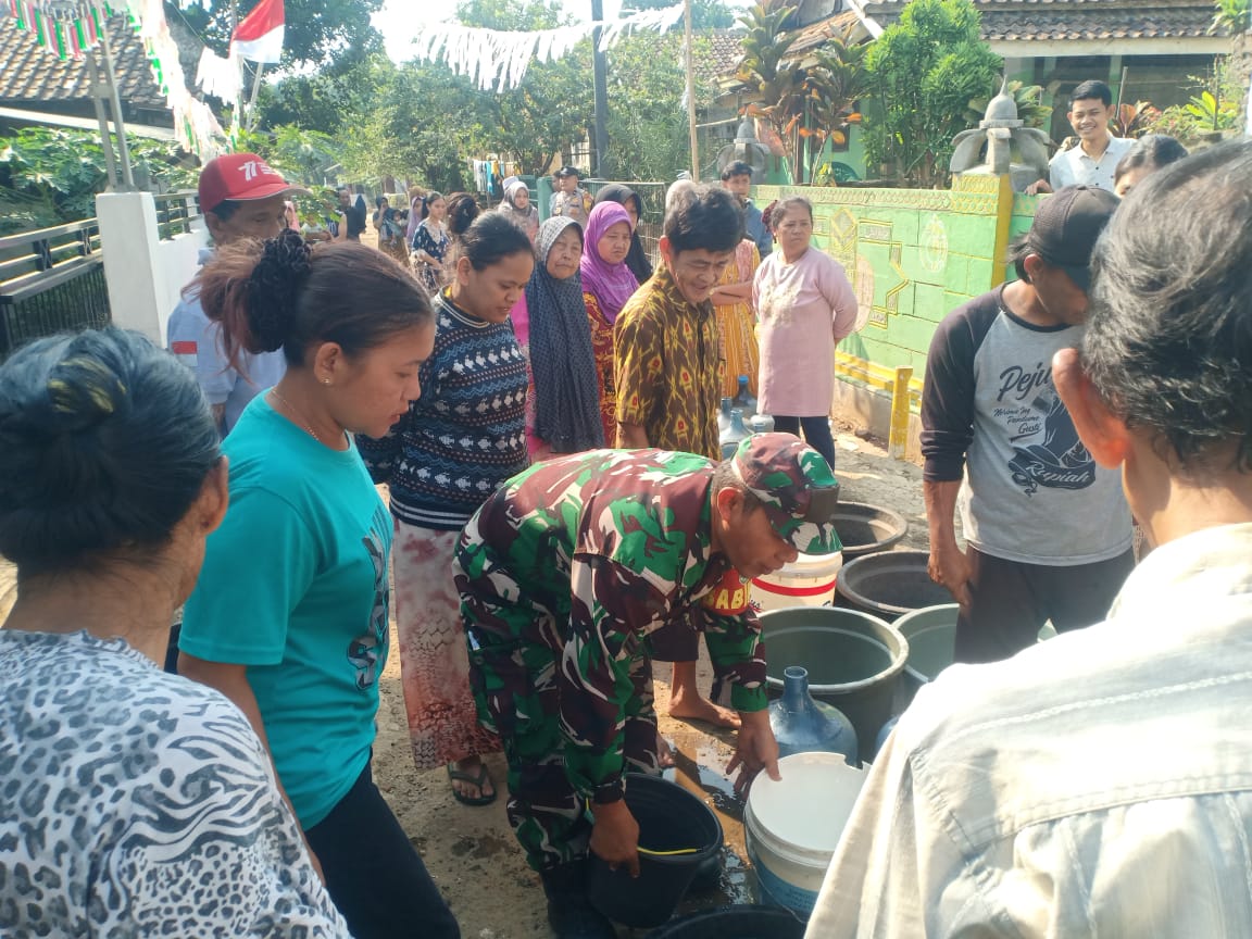 “Musim kemarau yang panjang, mengakibatkan banyak warga yang mengalami kesulitan mendapatkan air bersih untuk keperluan sehari-hari, saat ini warga hanya mengarapkan bantuan dari pemerintah karena sumber air yang ada mengalami kekeringan, “terang Danramil