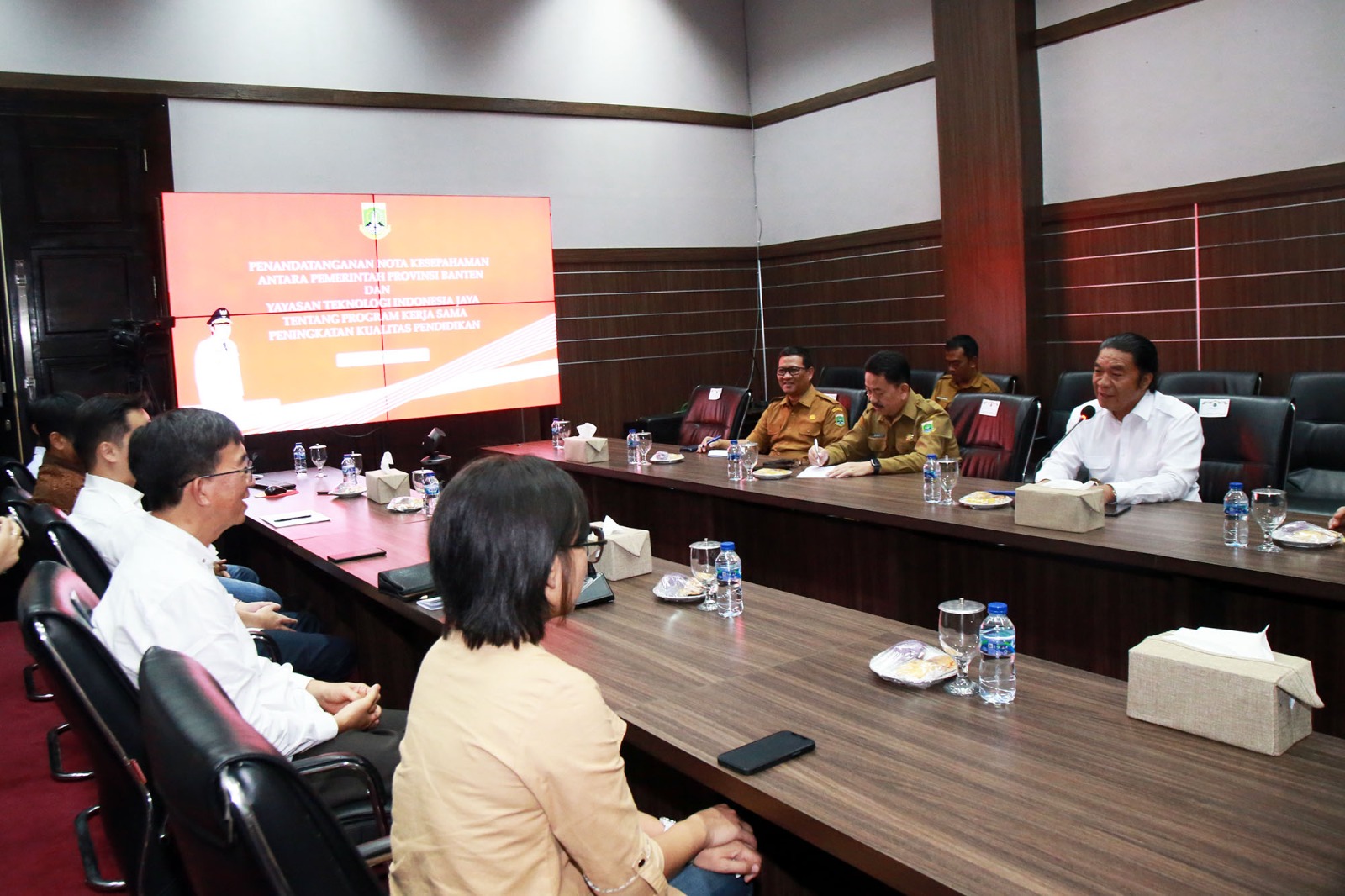 “Dalam memformalkan Surat Edaran Menteri Dalam Negeri. Kita adakan kerja sama ini dalam rangka meningkatkan mutu pendidikan dalam setiap jenjang pendidikan dimulai dari SMP lalu berikutnya,” jelasnya seusai menandatangani nota kesepahaman antara Pemerintah Provinsi Banten dengan Yayasan Teknologi Indonesia Jaya tentang program kerja sama peningkatan kualitas pendidikan di Ruang Rapat Gubernur Banten, KP3B, Kota Serang. Selasa, (5/9/2023).