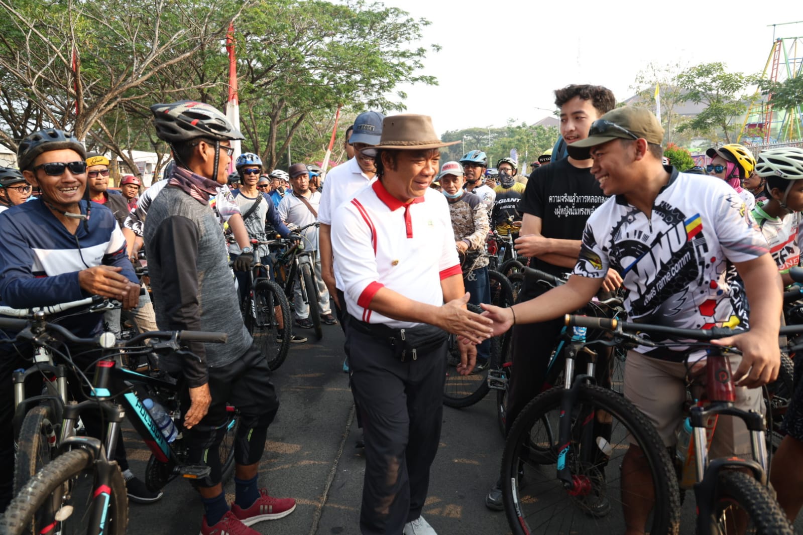 Kegiatan diawali Al Muktabar dengan melepas Fun Bike atau Sepeda Santai 391 Tahun Kabupaten Tangerang di Alun-alun Tigaraksa, Kabupaten Tangerang, Sabtu (14/10/2023). Turut mendampingi pelepasan: Pj Bupati Tangerang Andi Ony Prihartono, Pj Sekda Provinsi Banten Virgojanti, serta Ketua Komisi V DPRD Provinsi Banten Yeremia Mendrofa.