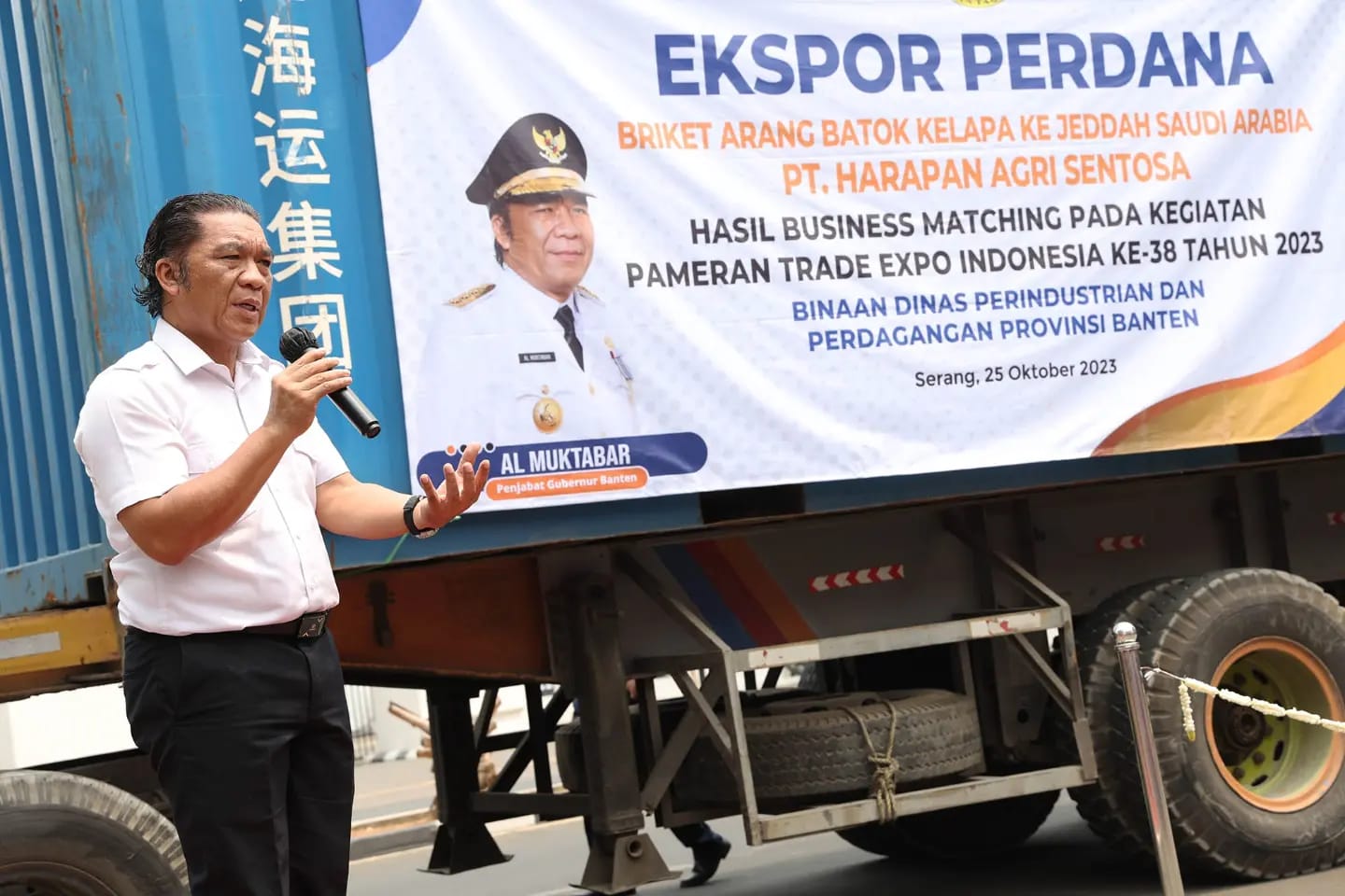 (Infoparlemen.co.id) – Penjabat (Pj) Gubernur Banten Al Muktabar melepas ekspor perdana briket arang batok kelapa tujuan Arab Saudi produksi PT Harapan Agri, IKM binaan Dinas Perindustrian dan Perdagangan Provinsi Banten, Rabu (25/10/2023). Pemerintah Provinsi Banten terus melakukan pembinaan dan pendampingan Usaha Menengah Kecil Mikro (UMKM) dan Industri Kecil Menengah (IKM) untuk naik kelas sekaligus memperluas lapangan kerja masyarakat.