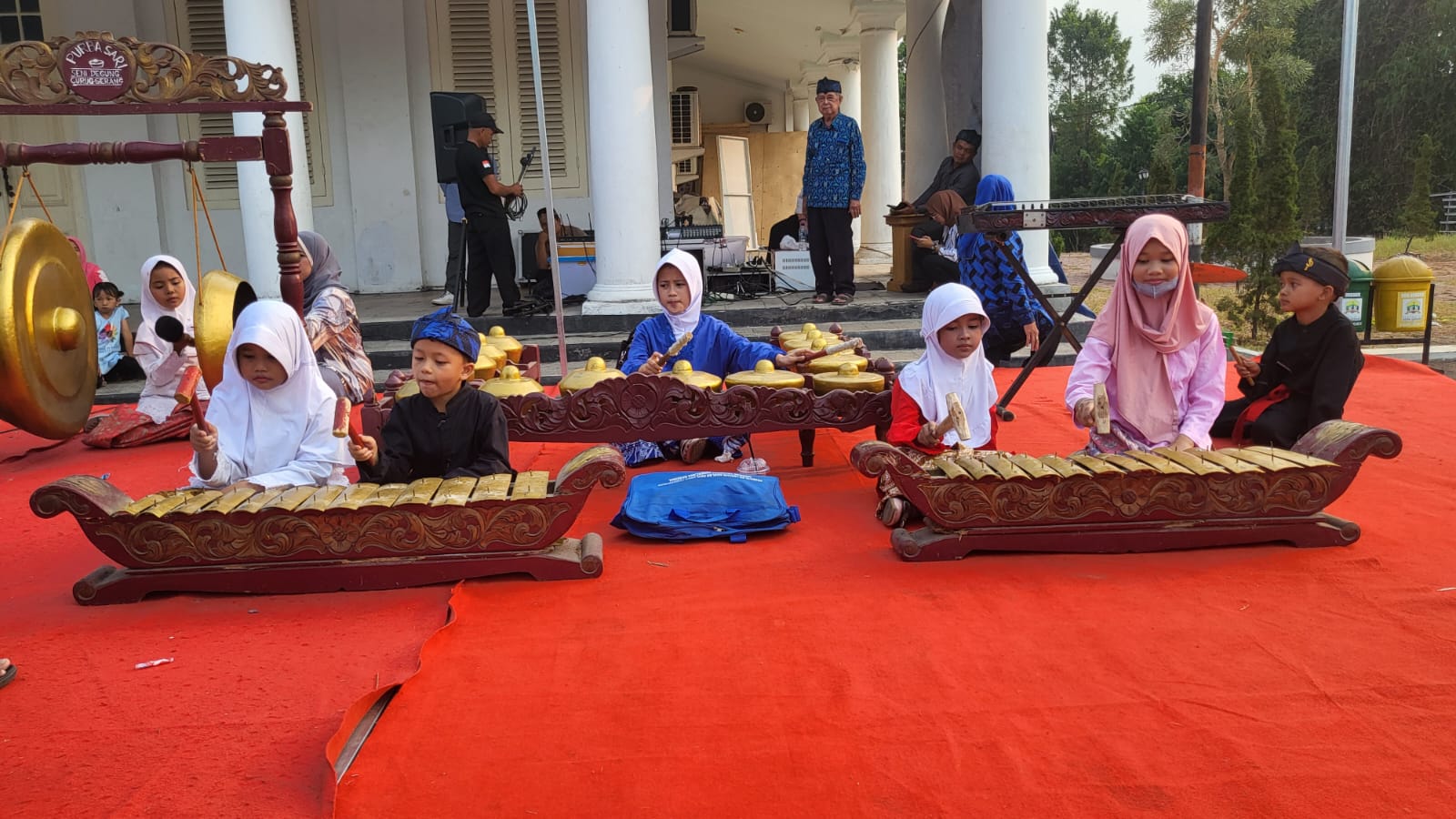 (Infoparlemen.co.id) – Paguyuban Sumedang Larang (PSL) Banten menampilkan seni tradisi Sunda Degung yang dibawakan anak-anak usia sekolah dasar pada acara Rabegan program Paguyuban Pasundan Wilayah Provinsi Banten, di Halaman Gedung Juang 1945 samping Alun-alun Kota Serang, Jumat (27/10/2023. Upaya menanamkan seni tradisi kepada generasi milenial.