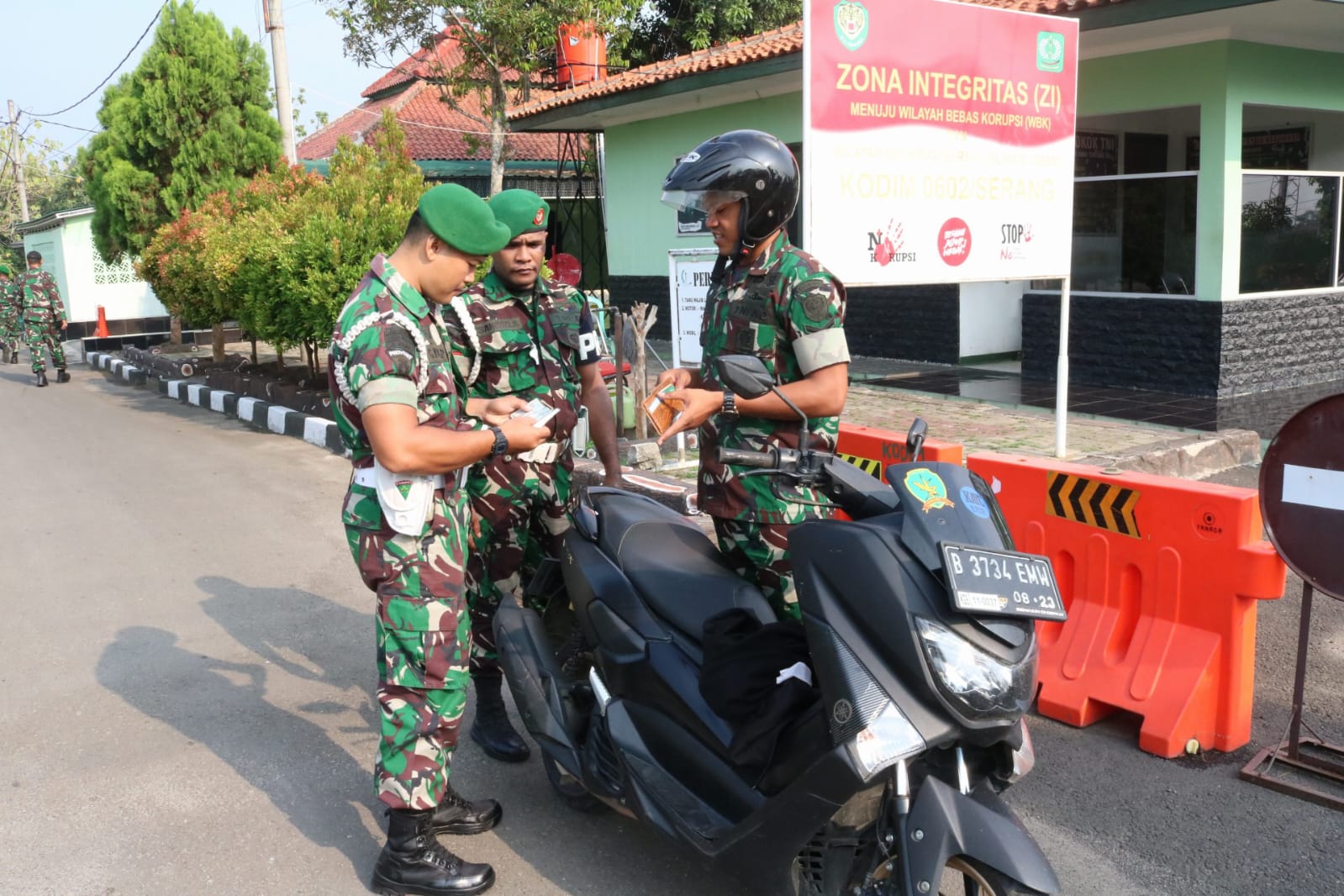 Provost satuan Kodim 0602/Serang melaksanakan pengecekan, kelengkapan surat kendaraan yang digunakan oleh anggota, baik berupa kendaraan dinas ataupun kendaraan pribadi.
