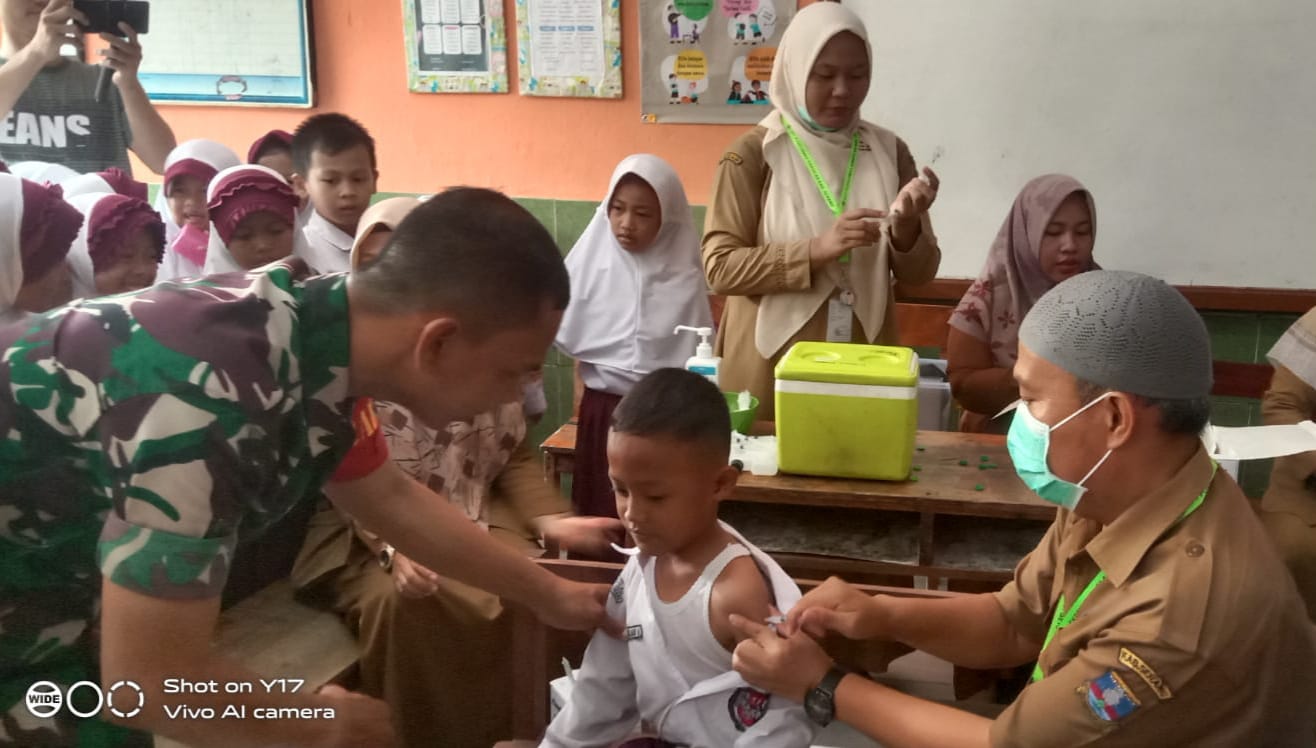 Babinsa Koramil 0602-18/Kragilan Kodim 0602/Serang Sertu Ahdi Sutisna mengatakan Program pemerintah tersebut bertujuan memberi perlindungan kepada peserta didik dari ancaman penyakit.