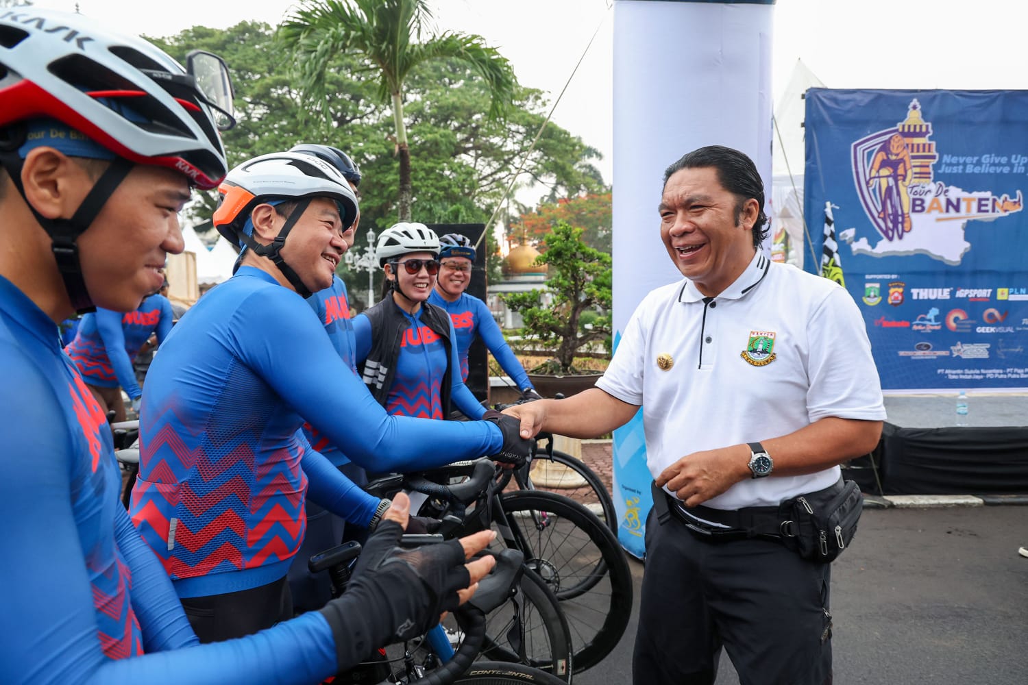 (Infoparlemen.co.id) – Penjabat (Pj) Gubernur Banten Al Muktabar melepas peserta Sepeda Tour de Banten 2023 kolaborasi Komunitas Serang Road Bike dengan Kepolisian Daerah Banten di Pendopo Bupati Serang. Sabtu, (25/11/2023). Tour de Banten 2023 turut perkuat gerakan Bangga Berwisata di Indonesia (BBWI) khususnya di Provinsi Banten.