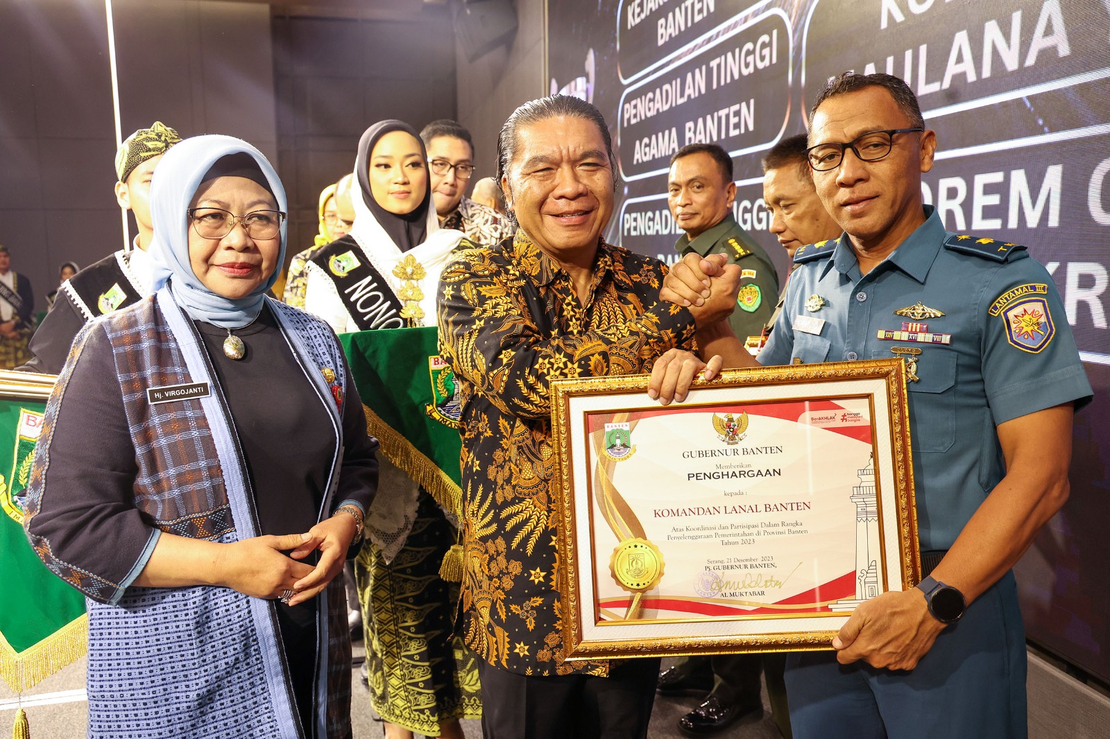 Dalam kesempatan itu, Al Muktabar juga memberikan penghargaan atas partisipasi dan koordinasi penyelenggaraan pemerintah daerah tahun 2023 kepada Forkopimda Provinsi Banten, instansi vertikal di Provinsi Banten serta penghargaan khusus atas partisipasi dan kerjasama dalam pengamanan ketertiban lalu lintas di Provinsi Banten kepada Kasat Lantas Polres Serang AKP Tiwi Afrina.