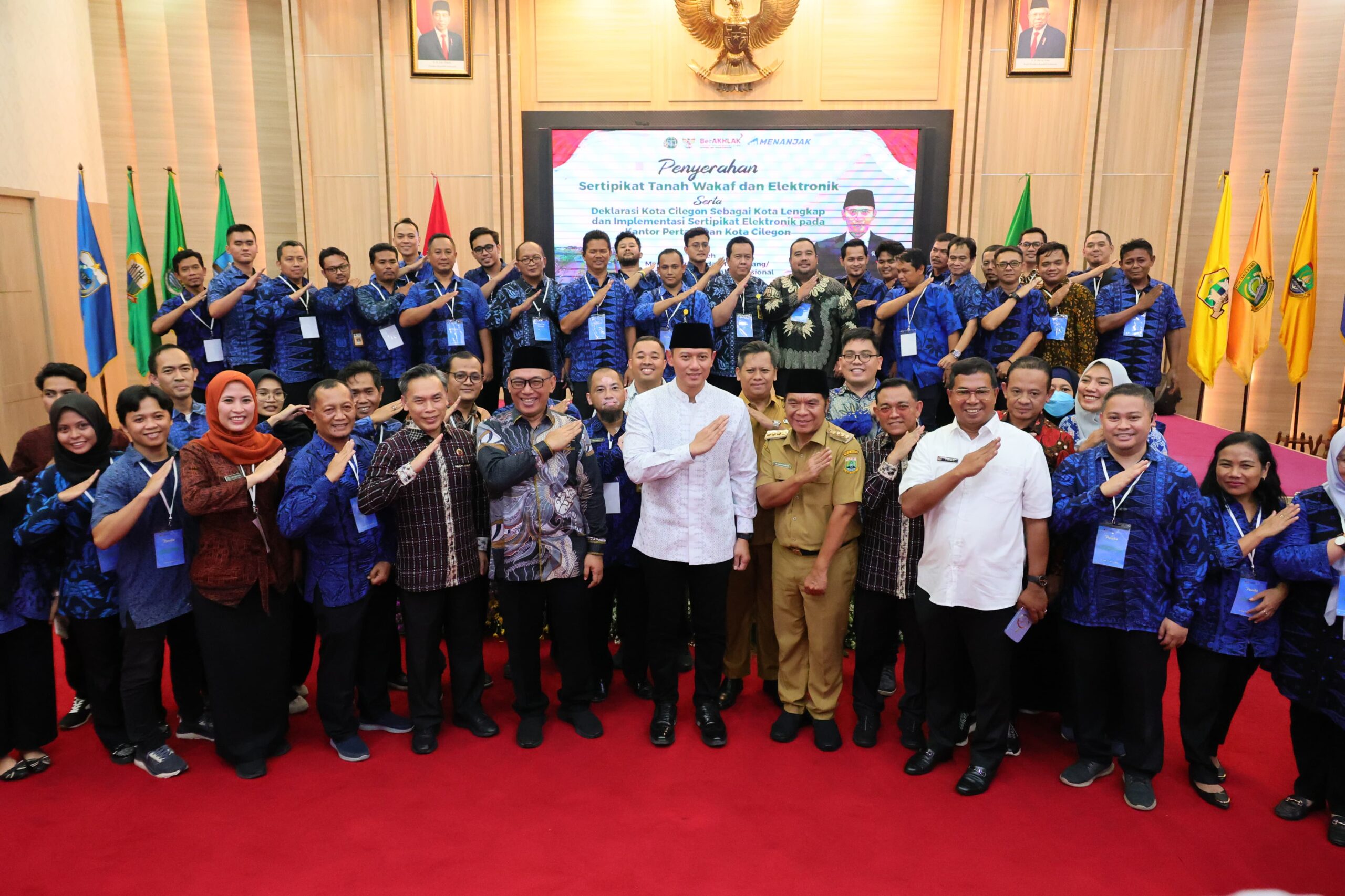 Turut hadir pada rangkaian kegiatan ini, para Pejabat Pimpinan Tinggi Madya dan Pratama di lingkungan Kementerian ATR/BPN; Ketua Badan Wakaf Indonesia (BWI) Pusat, H. Mohammad Nuh beserta jajaran pengurus BWI Pusat dan Pengurus BWI se-Provinsi Banten; Ketua Majelis Ulama Indonesia Provinsi Banten; jajaran Forkopimda Provinsi Banten; Kepala Kanwil Kementerian Agama Provinsi Banten dan Kepala Kantor Kementerian Agama se-Provinsi Banten; Kepala Kantah se-Provinsi Banten beserta jajaran; dan Wali Kota Cilegon, Helldy Agustian beserta jajaran Forkopimda. (MW/PHAL)