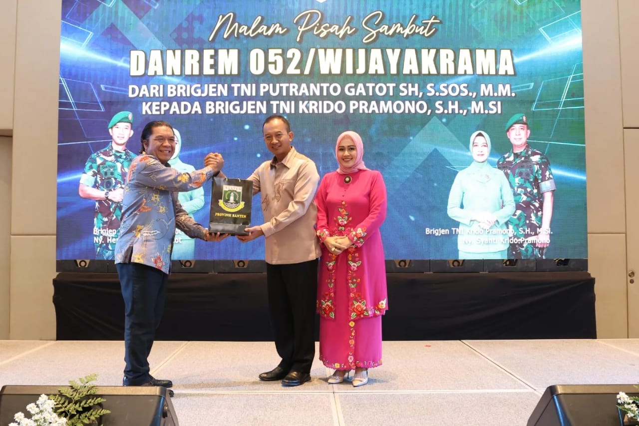 Tangerang, (infoparlemen.co.id) – Penjabat (Pj) Gubernur Banten Al Muktabar menghadiri malam pisah sambut Danrem 052/Wijayakrama dari Brigjen TNI Putranto Gatot kepada Brigjen TNI Krido Pramono di Episod Hotel, Tangerang, Rabu (17/4/2024) malam.