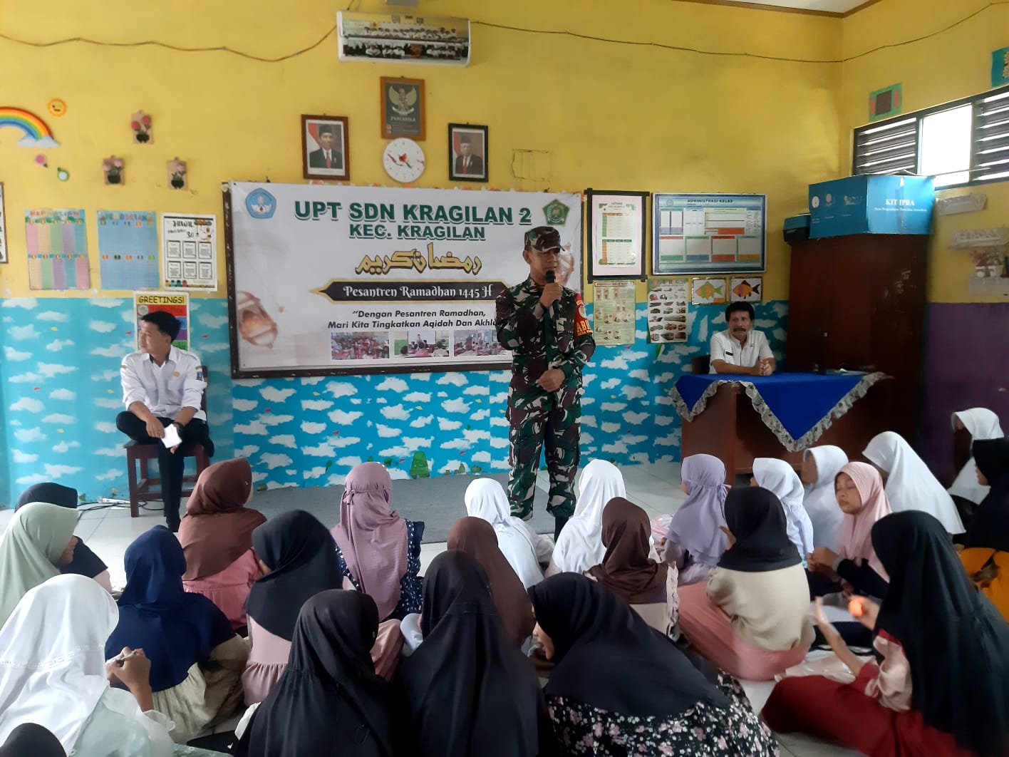 Babinsa juga sebagai pemberi materi dalam pesantren kilat tersebut, kehadiran Babinsa untuk memberikan arahan kepada siswa siswi diapresiasi oleh Kepala Sekolah SDN 2 Kragilan Kuswara, S.Pd.