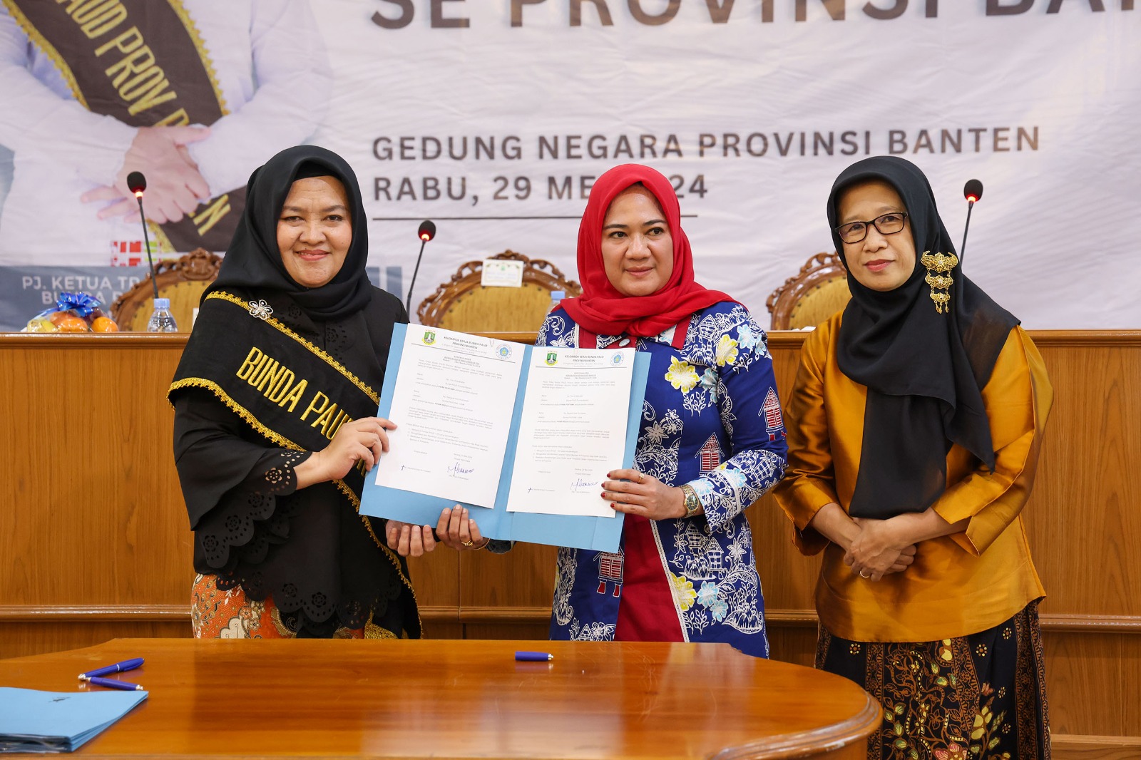 Hal itu diungkap Tine Al Muktabar usai Rapat Koordinasi Bunda Paud se-Provinsi Banten di Gedung Negara Provinsi Banten, Jl Brigjen KH Tb Syam’un No. 5 Kota Serang, Rabu (29/4/2024). Rapat bertujuan untuk sinkronisasi dan sinergitas program Bunda Paud se-Provinsi Banten.