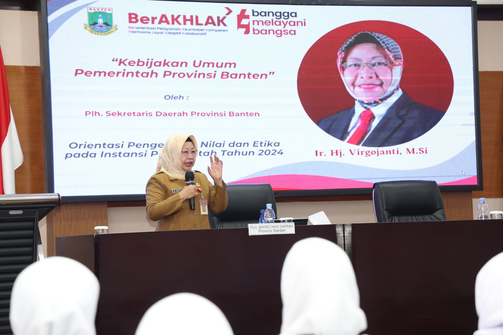 Pandeglang, (Infoparlemen.co.id) – Pelaksana Harian Sekretaris Daerah (Plh Sekda) Virgojanti berikan materi terkait Rancangan Pembangunan Daerah (RPD) 2025 kepada para peserta Orientasi Pegawai Pemerintah dengan Perjanjian Kerja (PPPK) Guru di Aula Badan Pengembangan Sumber Daya Manusia Daerah (BPSDMD) Provinsi Banten, Kabupaten Pandeglang, Selasa (28/5/2024). Virgo berharap guru dapat menciptakan generasi berakhlak mulia, berbudaya dan cerdas.