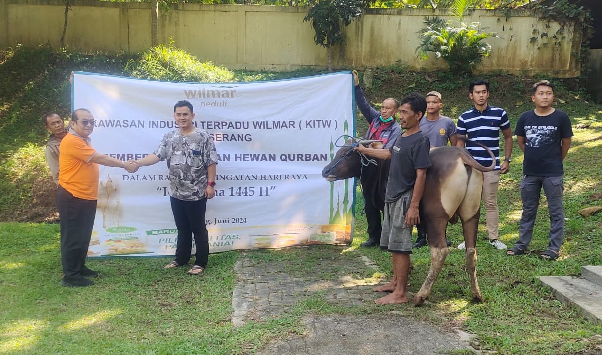 Serang, (Infoparlemen.co.id) – Wilmar Group yang diwadahi dalam Wilmar Region Banten melalui Kawasan Industri Terpadu Wilmar (KITW) yang ada di Desa Terate, Kecamatan Kramatwatu, Kabupaten Serang pada momen Hari Raya Idul Adha 1445 Hijriah membagikan sebanyak 43 hewan qurban meliputi 9 ekor sapi dan 34 ekor kambing kepada warga Kabupaten Serang.