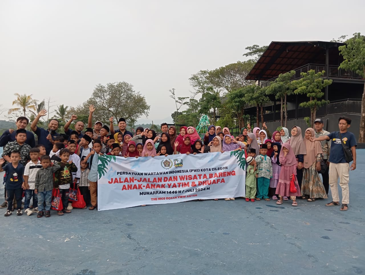 Kegiatan jalan-jalan dan bermain di tempat wisata bareng anak yatim kali ini berlangsung di The Nice Ocean View Anyer, yakni objek wisata yang baru beroperasi di Kawasan Pantai Anyer-Cinangka, Kabupaten Serang.