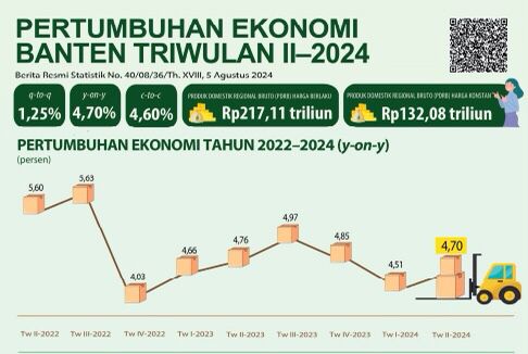 Pada Triwulan II 2024 Perekonomian Banten tumbuh 4,70 persen secara y-on-y (Triwulan II 2024 dibandingkan Triwulan II 2023). Dibandingkan terhadap triwulan I-2024, perekonomian Provinsi Banten triwulan II-2024 mengalami pertumbuhan sebesar 1,25 persen (q-to-q)