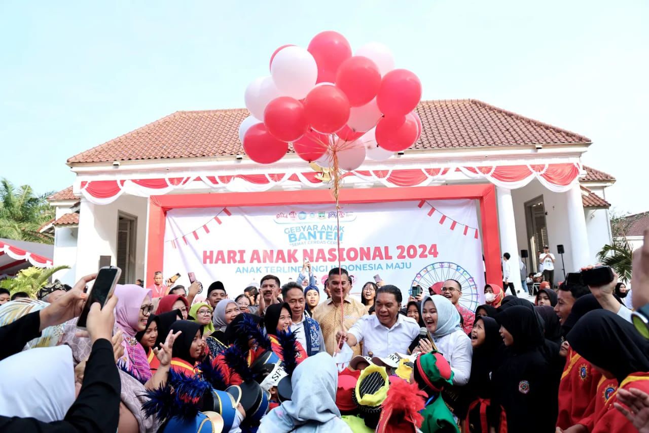 Serang, (Infoparlemen.co.id) – Penjabat (Pj) Gubernur Banten Al Muktabar bersama Forum Komunikasi Pimpinan Daerah (Forkopimda) Provinsi Banten terima 15 Suara Anak Banten. Rumusan itu diserahkan oleh Forum Anak Banten (FAB) pada Puncak Peringatan Hari Anak Nasional 2024 Tingkat Provinsi Banten di Gedung Negara Provinsi Banten Jl Brigjen KH Syam’un No 5, Kota Serang, Sabtu (3/8/2024).