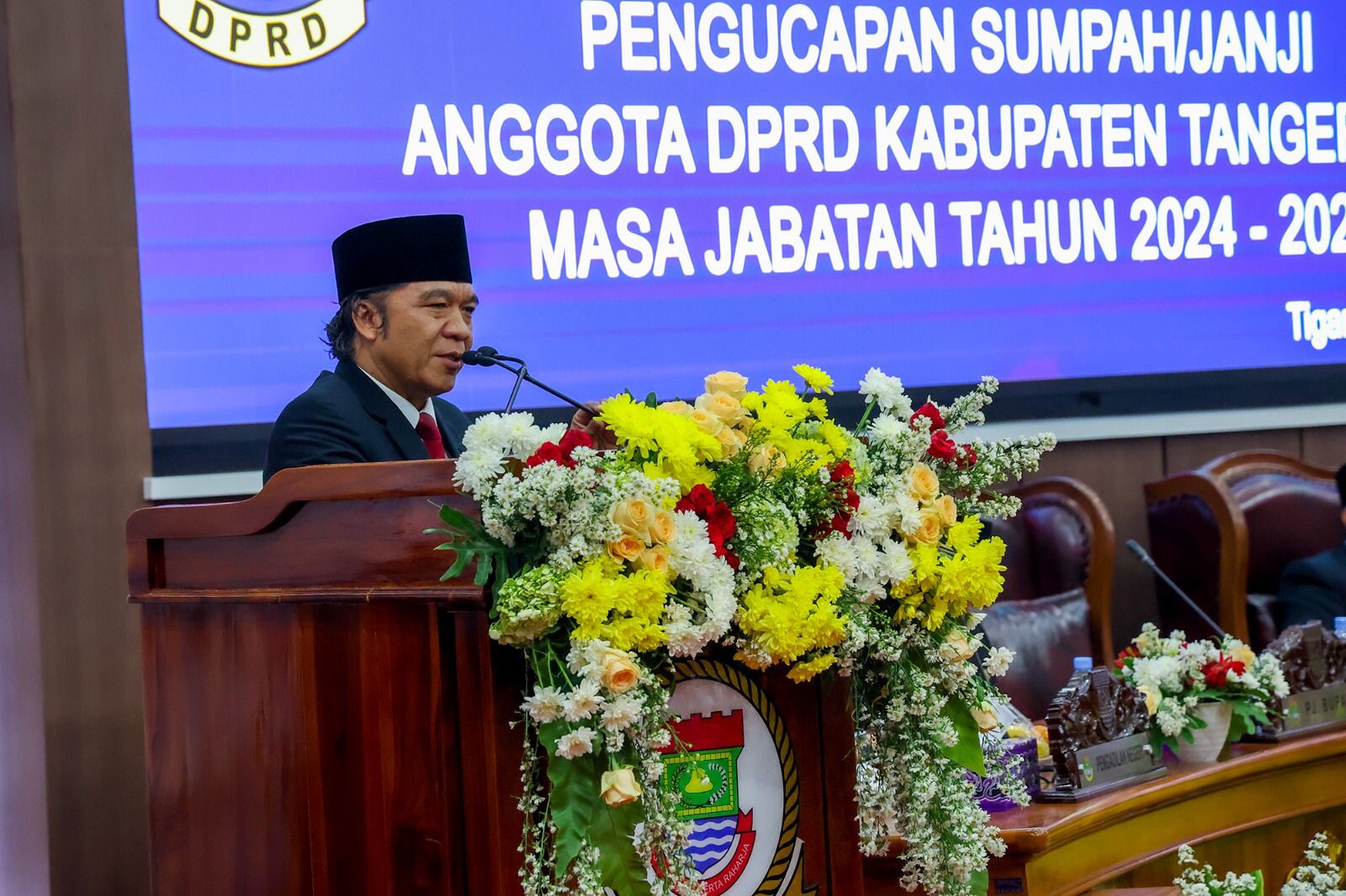 Sebagai informasi, sebanyak 55 anggota DPRD Kabupaten Tangerang periode 2024-2029 melakukan Sumpah Janji Jabatan yang dipimpin oleh Kepala Pengadilan Agama Kabupaten Tangerang Fakmiron. Pada agenda ini ditentukan pimpinan DPRD Kabupaten Tangerang sementara yakni Ketua DPRD Muhammad Amud dan Wakil DPRD Kholid Ismail.