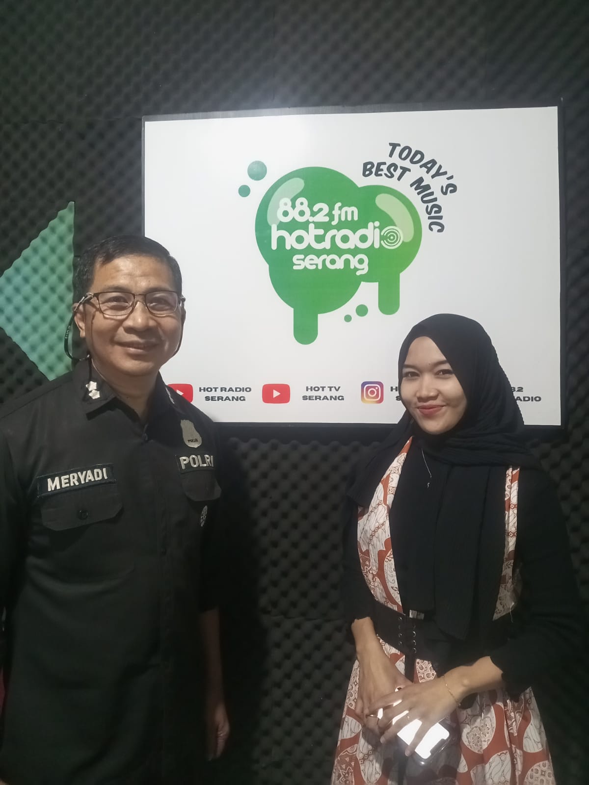 Hadir sebagai narasumber talkshow Kasubbidpenmas Bidhumas Polda Banten AKBP Meryadi, dipandu penyiar HOT Radio Serang Zulfa Lutfiani.