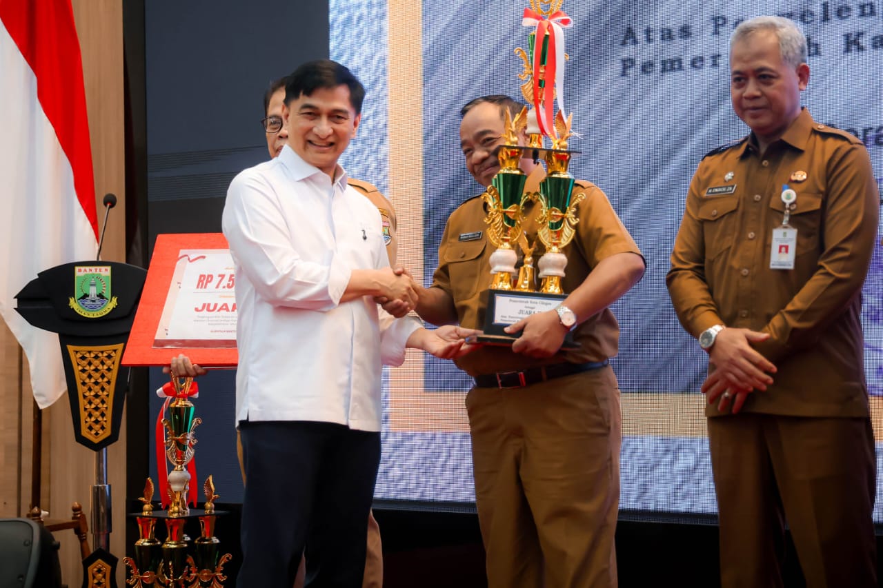 Sebagai informasi, berdasarkan Keputusan Gubernur Banten Nomor 248 Tahun 2025 Pemberian Penghargaan Kepada Kabupaten/ Kota dan Perangkat Daerah Tertib Arsip Terbaik Tahun 2024 memberikan penghargaan kepada Pemerintah Kabupaten Tangerang, Pemerintah Kota Cilegon, Pemerintah Kota Tangerang serta penghargaan atas partisipasi pengawasan kearsipan pemerintah Kabupaten/Kota se-Provinsi Banten tahun 2024 kepada Pemerintah Kabupaten Lebak, Kota Tangerang Selatan, Kota Serang, Kabupaten Serang, Kabupaten Pandeglang.