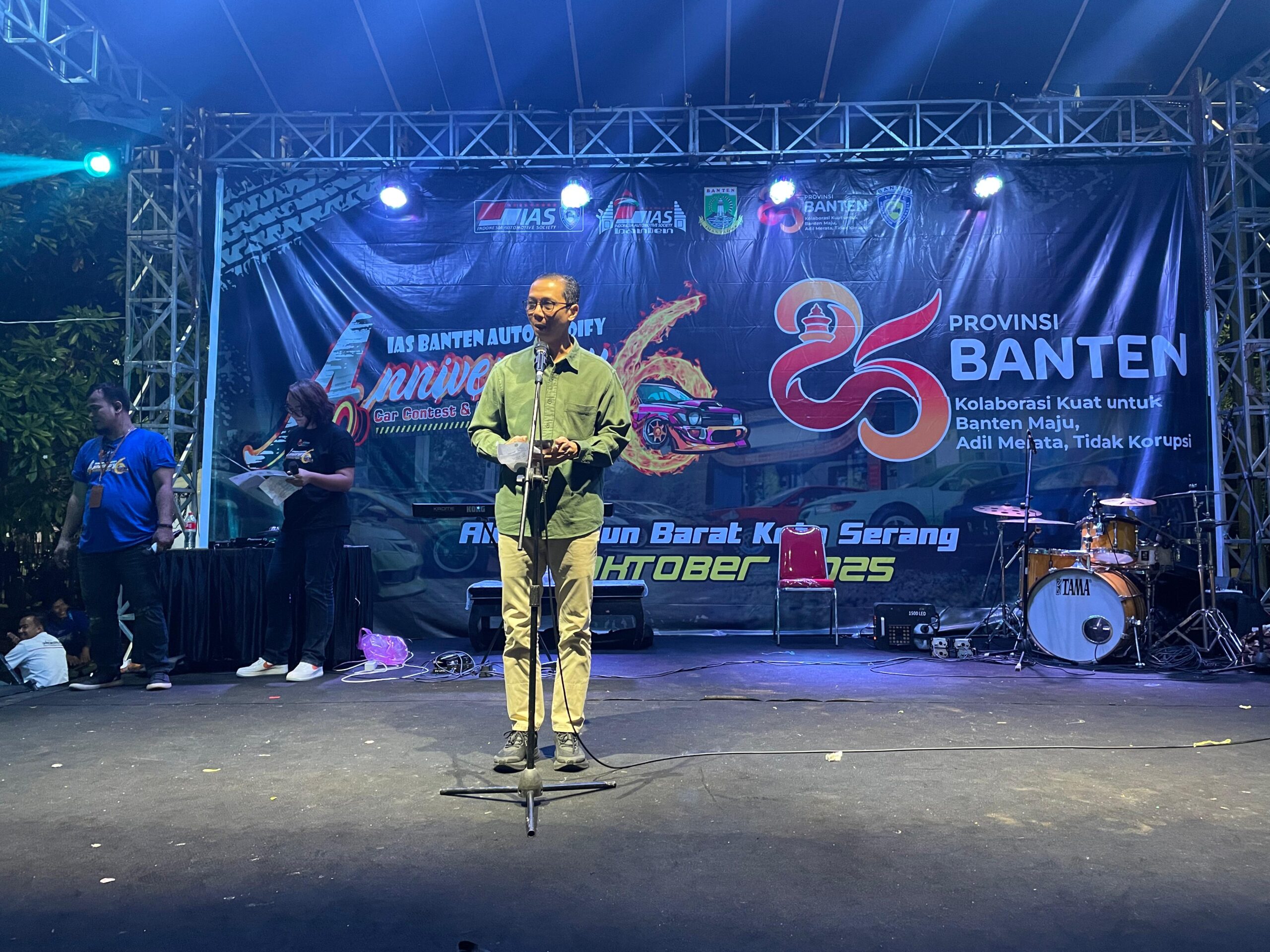Serang, (infoparlemen.co.id) – Pemerintah Provinsi (Pemprov) Banten menilai sektor otomotif memiliki peran besar dalam mendorong pertumbuhan ekonomi daerah. Hal tersebut disampaikan Gubernur Banten Andra Soni melalui Kepala Dinas Pemuda dan Olahraga (Kadispora) Ahmad Syaukani pada malam puncak peringatan Anniversary ke-6 Indonesia Automotive Society (IAS) Banten Auto Modify yang dirangkaikan dengan peringatan HUT ke-25 Provinsi Banten di Alun-alun Barat Kota Serang, Sabtu malam (18/10/2025).