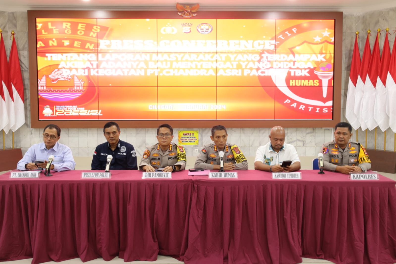 Cilegon, (infoparlemen.co.id) – Polda Banten gelar press conference tentang laporan masyarakat yang terdampak akibat adanya bau menyengat yang diduga dari kegiatan PT. Chandra Asri Pasific TBK bertempat di aula Polres Cilegon pada Senin (22/01). Kegiatan dipimpin Kabid Humas Polda Banten Kombes Pol Didik Hariyanto didampingi Dirpamobvit Polda Banten, Kasubbid Tokling Puslabfor Bareskrim Polri AKBP Faizal […]